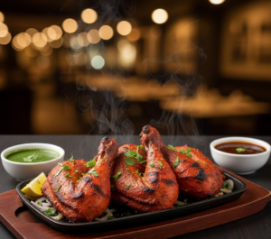 La nourriture indienne se compose de mouton, de poulet, de poisson et d’œufs et les boissons populaires sont le chai et le lassi.